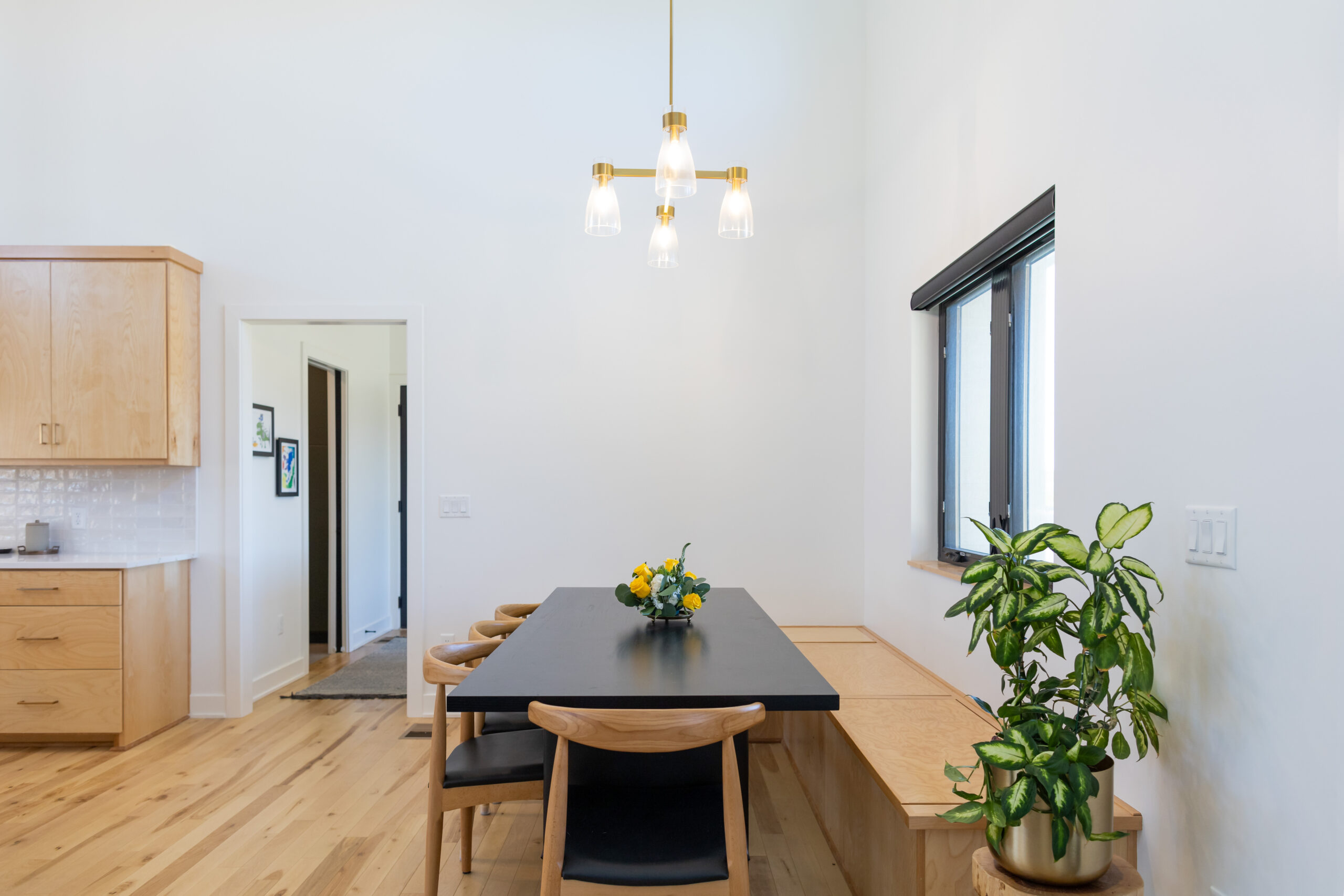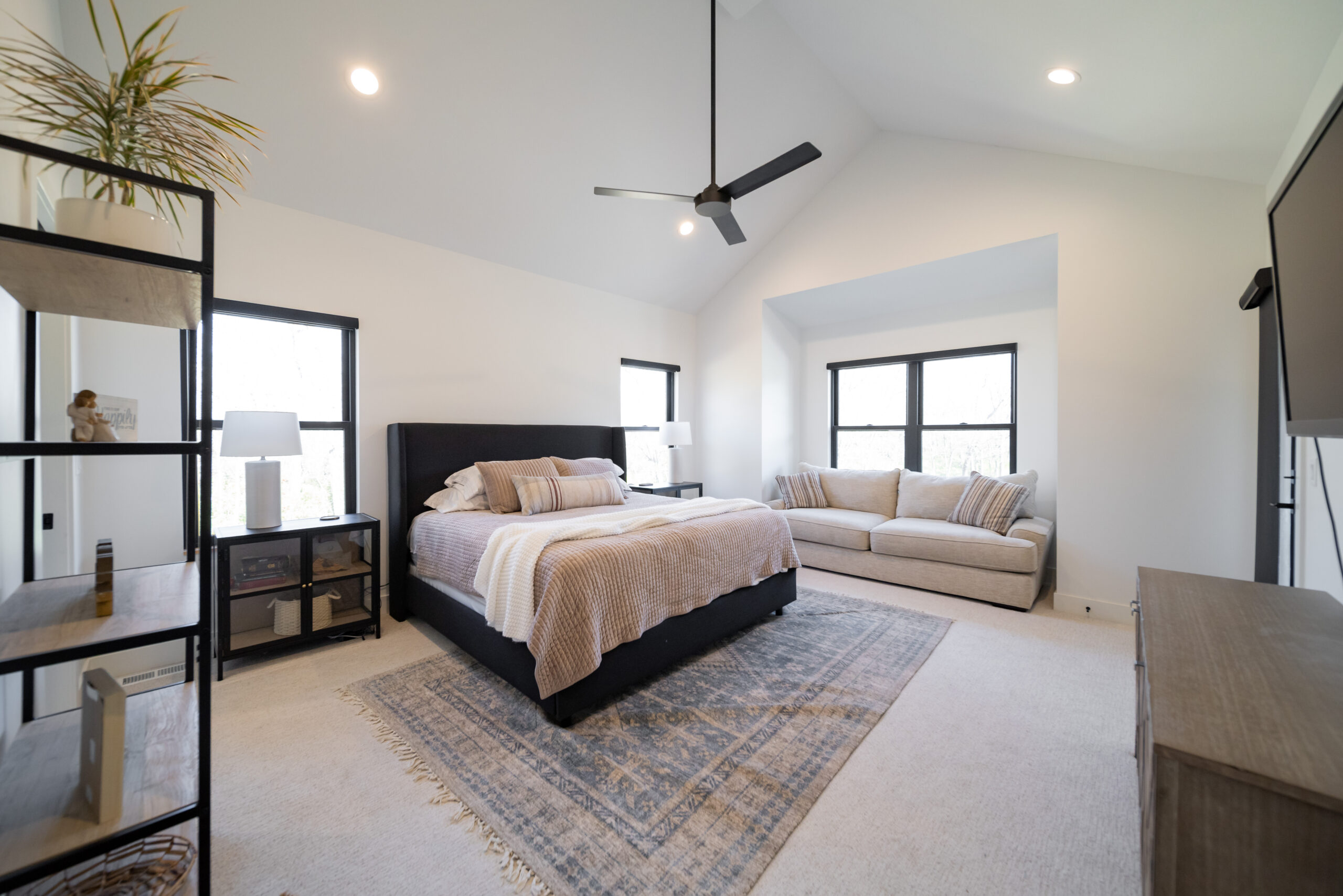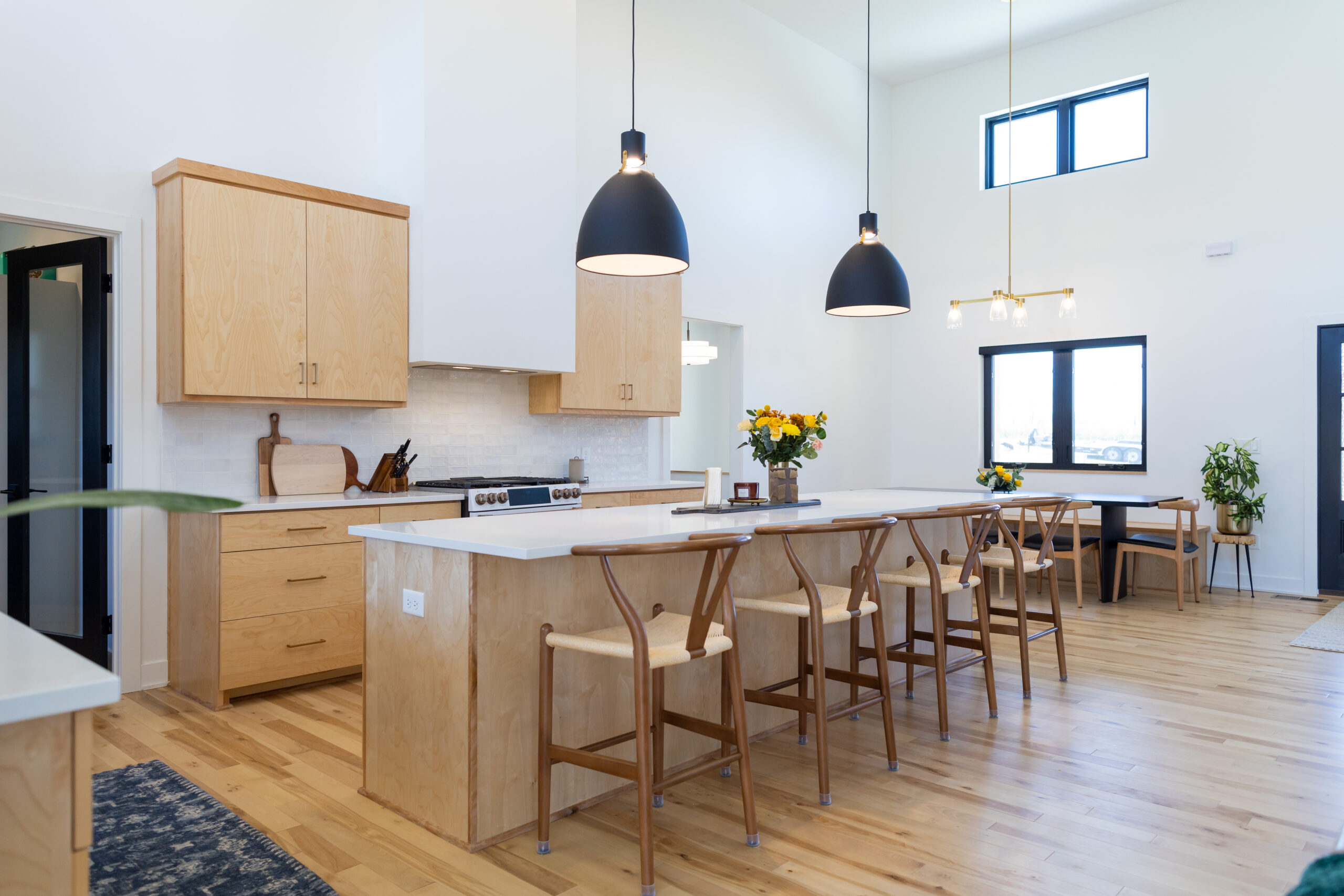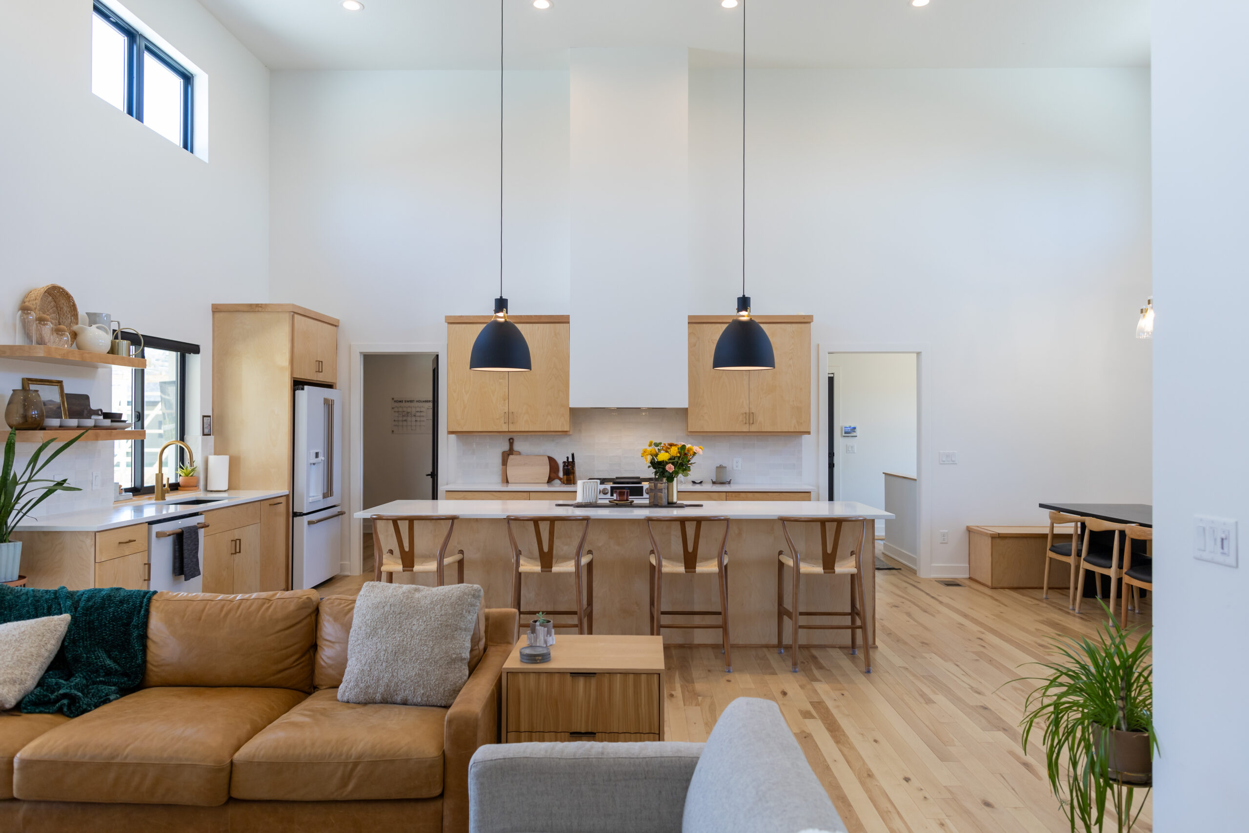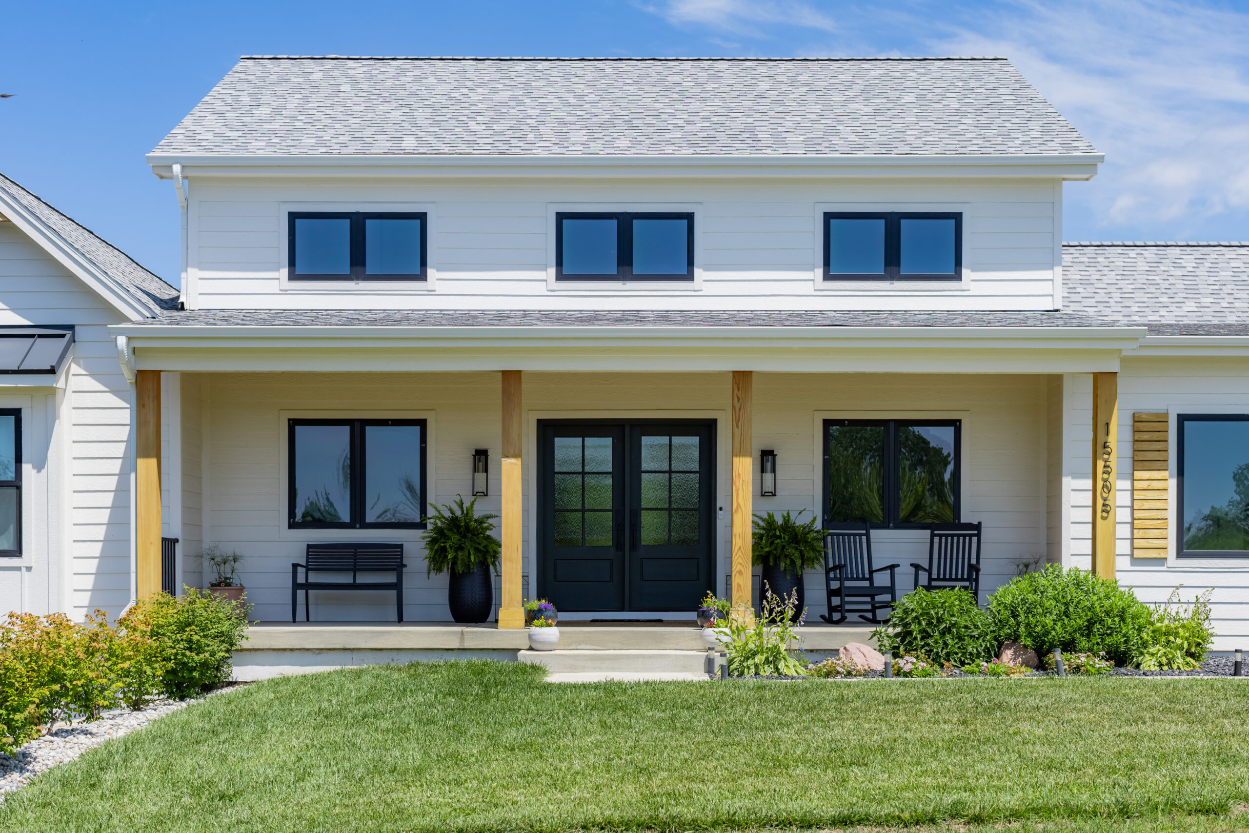 Ranch home, open concept floorplan with 4 bedrooms 3.5bathrooms and roughly 2800 finished square feet. Farmhouse exterior with black and cedar wood accents. More influence of the Modern farmhouse style for the interior with light wood tones and a simple combination of white, black and dark green finishes.