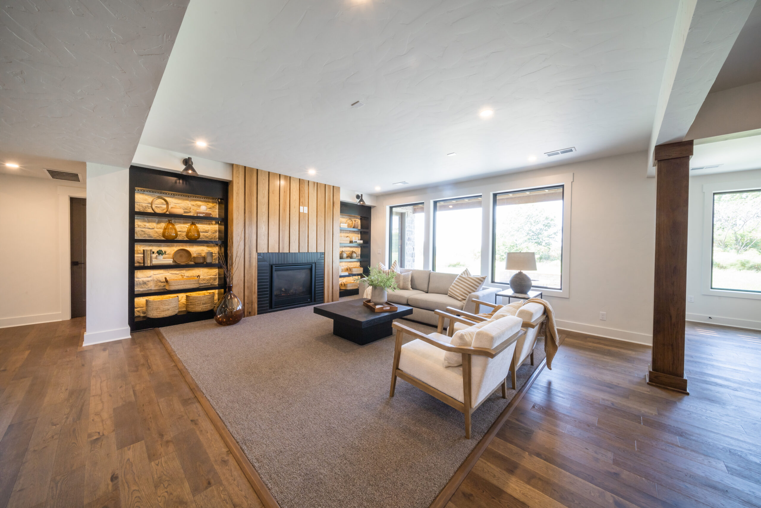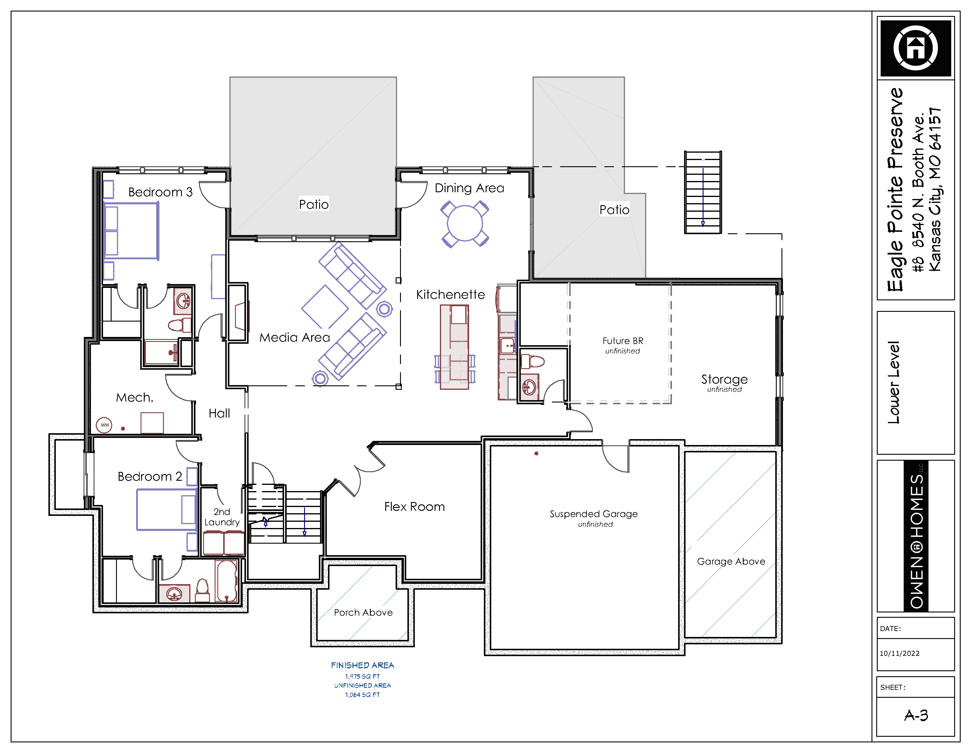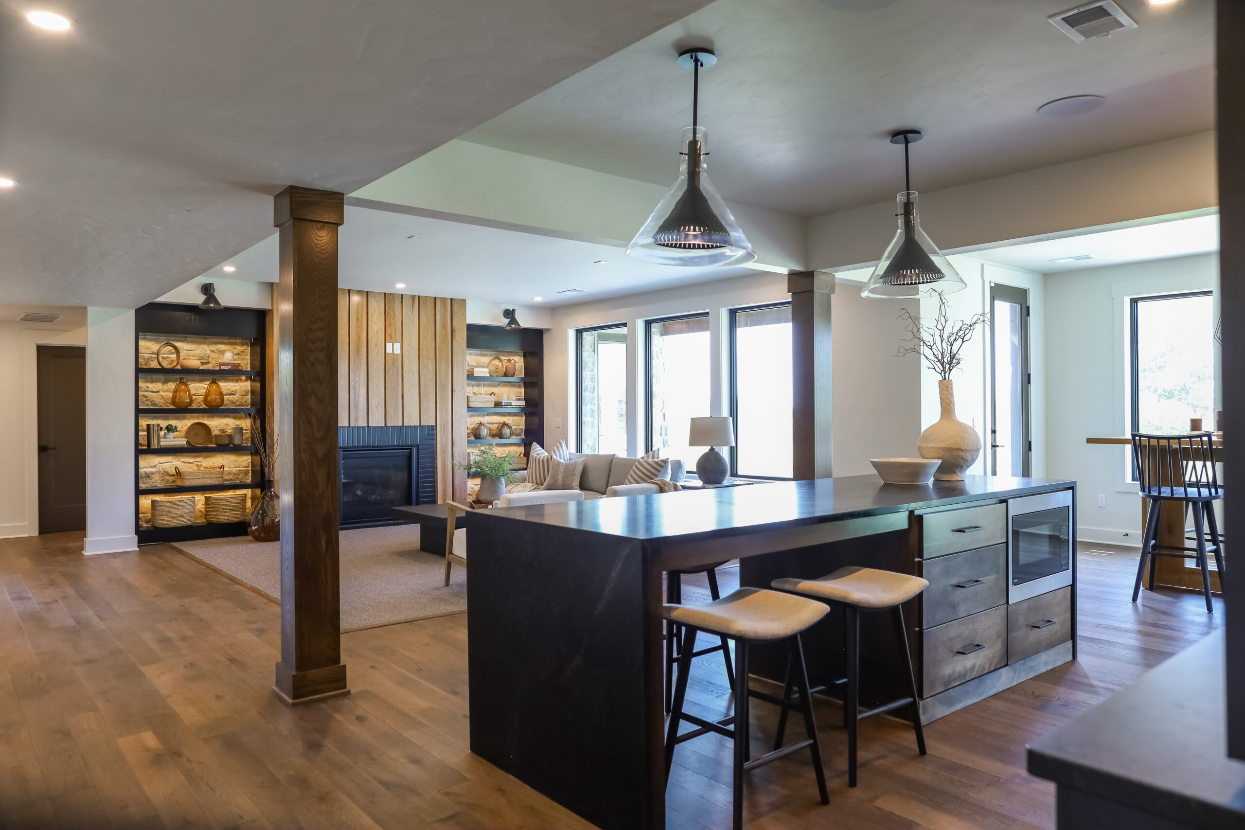 Welcome to Owen Homes’ award-winning plan, The Rainier, which overlooks the Shoal Creek golf course in the highly desired Eagle Pointe subdivision and Liberty School District. This reverse ranch with second-story bonus room features a Modern Mountain design that brings together natural wood and stone elements throughout. With 5,085 square feet of finished space, this home offers 5 bedroom suites, each bedroom with its own bathroom and walk-in closet. There are also 2 laundry rooms and 2 powder baths conveniently located on the main and lower levels.